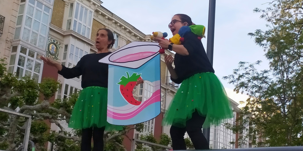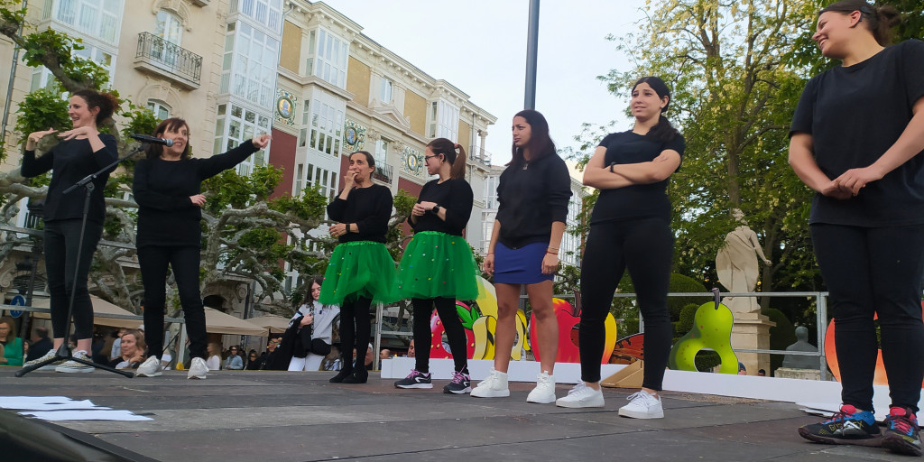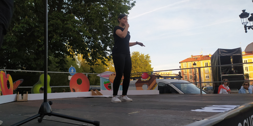 Nuestras compañeras sordas, Elena y Erika, contaron en LSE el cuentacuentos “La oruga glotona” mientras Julia interpretaba al oral; nuestras jóvenes de la asociación, Marian, Laura, Adriani y Sonia escenificaron con expresión facial y corporal algunos personajes de cuentos y películas infantiles; presentamos nuestro tradicional concurso “Adivina, adivinanza, lo que signo, quién lo canta” en el que las compañeras ILSEs Egle, Julia y Marisol interpretaron trocitos de canciones famosas, pero sin música, para que el público adivinase cuáles eran; y por último, signamos todo el público presente la canción de La M.O.D.A “Mañana voy a Burgos”, que estuvimos enseñando durante el tiempo que estuvimos allí.