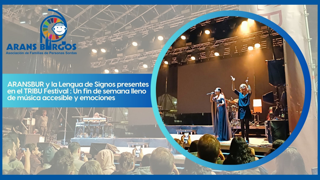 Aquí os dejamos algunas fotos y vídeos de nuestra presencia en el festival TRIBU celebrado este fin de semana en la Plaza Mayor de Burgos, en el que nuestra compañera Conchita estuvo interpretando en LSE el viernes el concierto del grupo burgalés El Nido; y el sábado, el concierto de Mª José Llergo. Un grupo de personas sordas acudieron y disfrutaron muchísimo de esta experiencia accesible, por lo que agradecemos enormemente al San Miguel Tribu Festival por contar con nosotros y querer hacer un festival accesible; a El Nido y Mª José Llergo por su cercanía, cariño, confianza y generosidad con nuestra compañera Conchita; además, Mª José Llergo tuvo muchísimos detalles de cariño, durante el concierto y fuera de él, con las jóvenes sordas de ARANSBUR que acudieron, que terminaron muy emocionadas haciéndose una foto con ella.