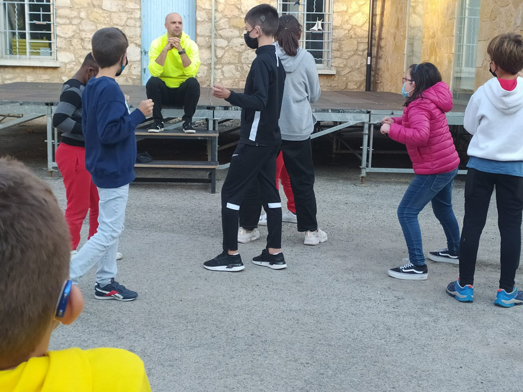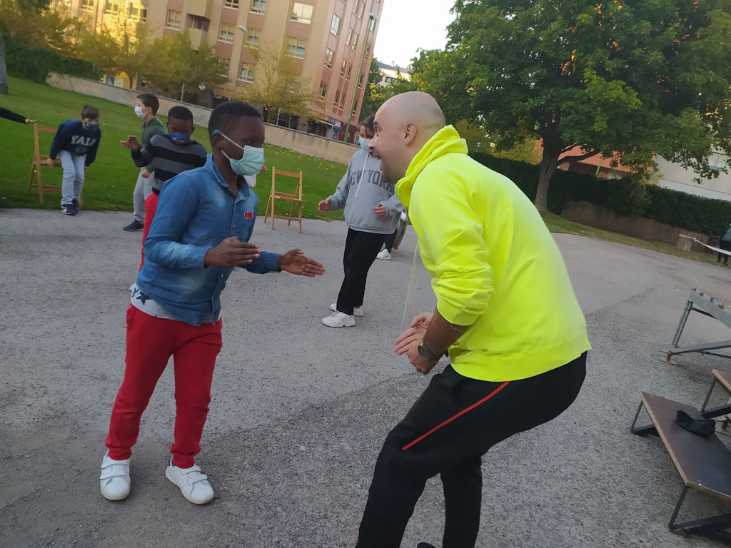 Ayer, los niños/as de ARANSBUR pudieron disfrutar de un taller de teatro gestual (foto superior) impartido por Javier Guisado (El Show de Chavi).