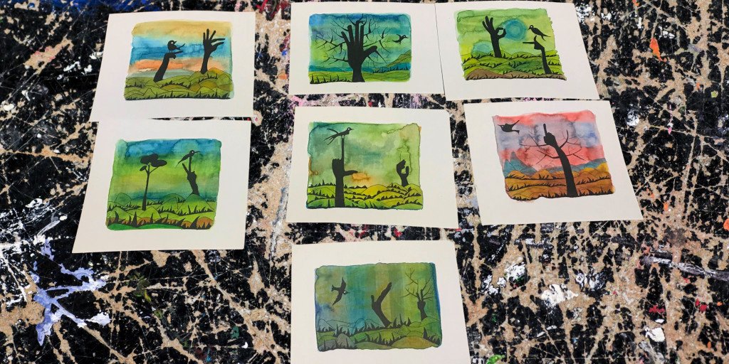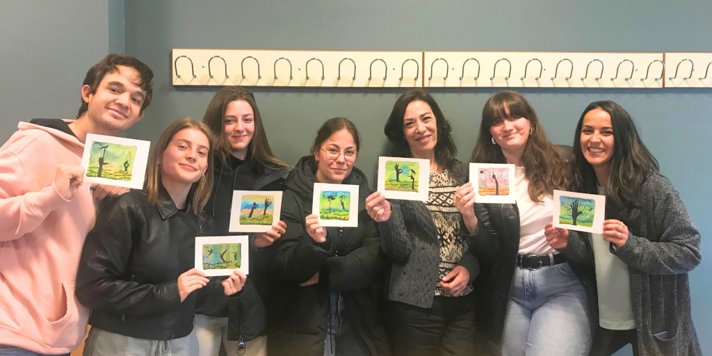 Queda poco para que el curso de LSE de nivel A1 que ARANSBUR imparte en la Universidad de Burgos llegue a su fin. Ayer una de la alumnas, Susana, nos dio una sorpresa regalándonos estos dibujos tan bonitos que ella misma ha realizado representando paisajes con configuraciones de la LSE simulando ser árboles, en las que anidan pájaros. Manos que se mueven al compás del viento y transmiten el cantar de las aves.