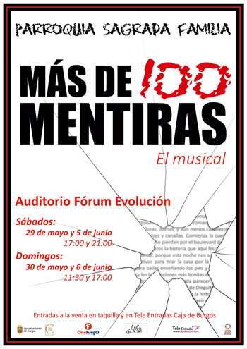 Como viene siendo habitual, ARANSBUR colabora con el Grupo de Jóvenes de la Sagrada Familia para que su tradicional MUSICAL SAFA pueda ser disfrutado por todos burgaleses en el marco del programa CULTURA ACCESIBLE. La cita fue este domingo, 6 de junio a las 17:00 horas en el Forum Evolución donde pudimos disfrutar de la música de Joaquín Sabina, en el musical titulado «Más de 100 mentiras«.
