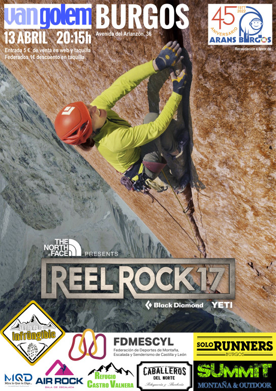 Por iniciativa del Club de Montaña Al filo de lo Infrüngible, podremos disfrutar el jueves 13 de Abril a las 20:15h en los cines Van Golem por primera vez en Burgos de la última entrega del Reel Rock Tour 17. Esta vez incluye tres emocionantes películas con las historias de escalada y aventura más importantes del año.