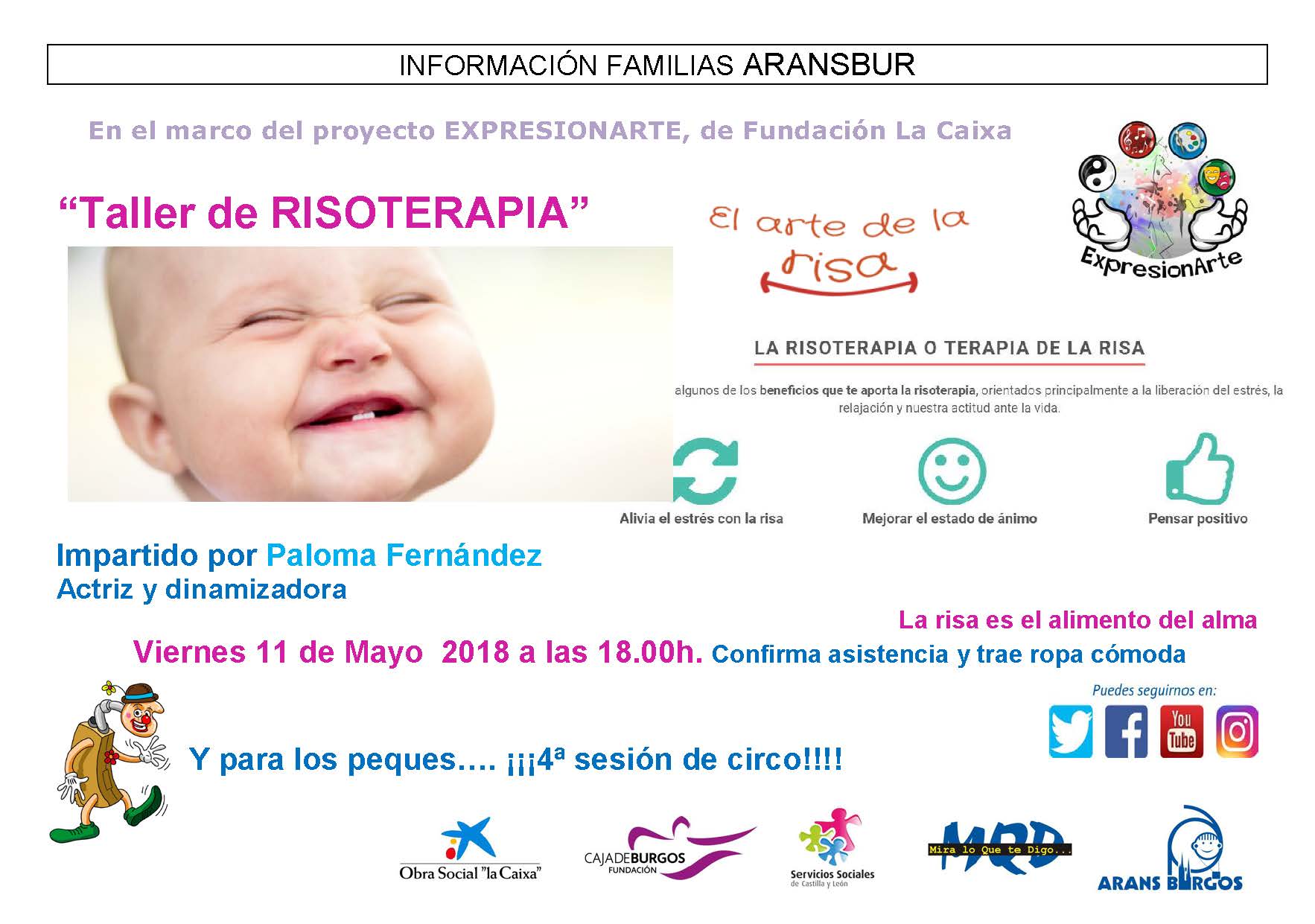 Taller de risoterapia. Viernes 11 de Mayo. Impartido por Paloma Fernández, actriz y dinamizadora.