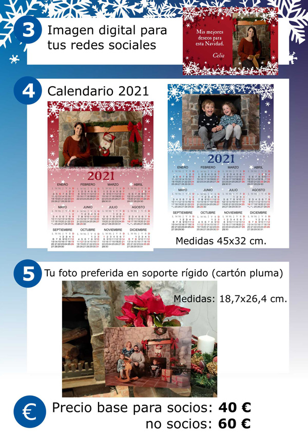 La familia interesada puede hacerse una sesión de fotos familiar, que luego podrán ser utilizadas en distintos soportes (postales, cartón pluma, calendario…). Precio base de 40 € para los socios y de 60 € para los no socios. Si estáis interesados y, por cuestiones de organización, contactar con nosotras a través del correo electrónico aransbur@mqd.es o del teléfono 947 46 05 40.