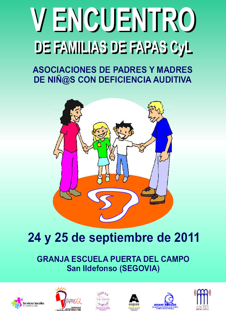 La asociación anfitriona será ASEFAS que ha organizado una jornada formativa sobre hipoacusia y lenguaje, en la que actualizaremos conocimientos sobre adaptaciones protésicas, implante coclear, tecnologías de apoyo y la importancia de la logopedia como entrenadora insustituible de habilidades audiolingüísticas. Cumplimos así una demanda de las familias: el aprovechar los encuentros para aprender,compartir experiencias, dialogar sobre tod oaquello que preocupa a las familias, dar a conocer todos los servicios que se ofrecen en todas las asociaciones de Padres de Castilla y León e intentar mejorar en todo lo que sea posible gracias a la colaboración de todos. Por todo esto os animamos a participar y de esta forma continuar luchando por mejorar la calidad de vida denuestros hijos.