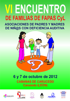 Como familia y/o amig@ de niñ@ con deficiencia auditiva, te invitamos a participar en este ya nuestro sexto encuentro que se celebrará los próximos 6 y 7 de octubre de 2012 en Carucedo (León). Aprovecharemos para intercambiar información y experiencias con otros padres de otras provincias así como disfrutar también espacios para el ocio, las actividades lúdicas, la cultura y el contacto con la naturaleza. Es una oportunidad única para conocer a otros padres con hijos con características comunes… no os lo podéis perder…. ¡ÁNIMO, OS ESPERAMOS!